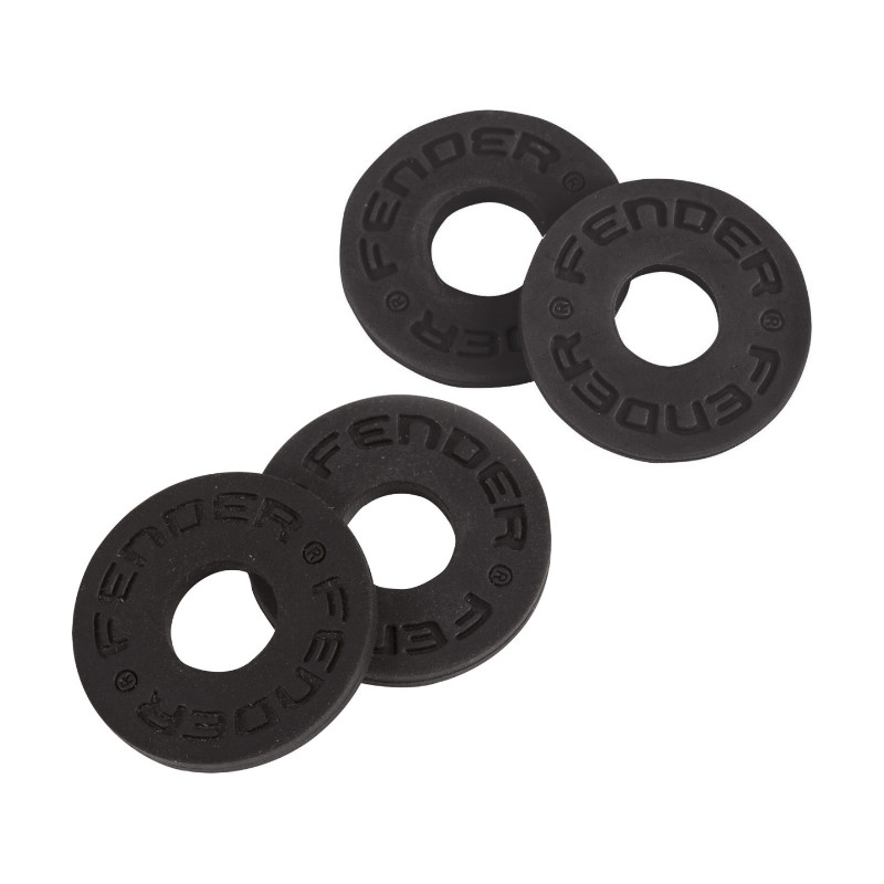 Set of four Fender Strap Blocks (two black and two red) that provide a remarkably simple and effective means of "locking" instrument straps in place. Compatible with most OEM strap buttons.