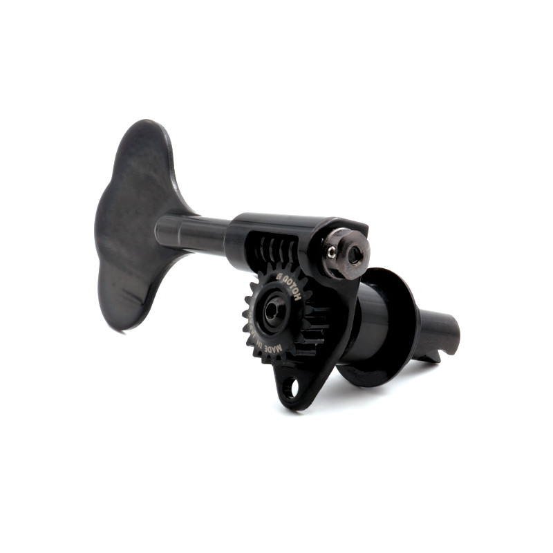 GOTOH® GB350 RES-O-LITE SERIES MACHINE HEAD FOR BASS LIGHTWEIGHT 1:20 RIGHT SIDE COSMO BLACK (1pc) -Weight : 40g/pc -Aluminium Shaft, Worm and Gear -Plastic Button (Plated) -Gear Ratio : 1:20