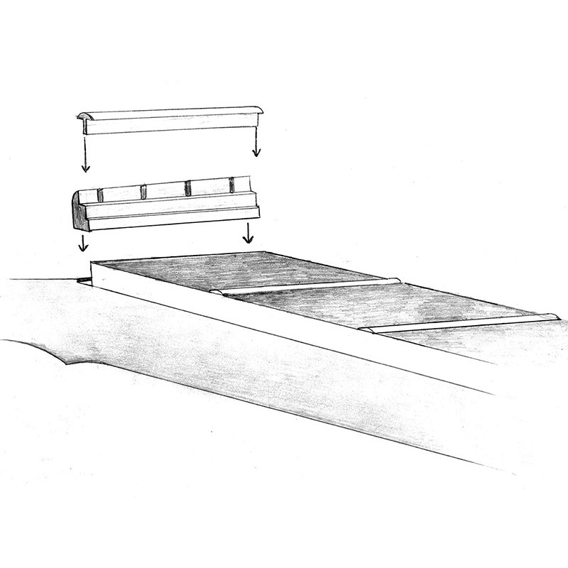 Three rollers on a steel axle provide for frictionless tremolo action. The rollers have a distance of 3.5mm to the front edge, so the fingerboard has to be cut off accordingly. Dimensions: 42.8 x 12mm Height in the middle: ca. 6mm String spacing: 35mm