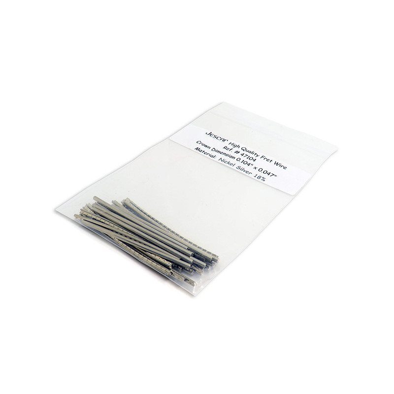 JESCAR® FRETWIRE 18% NICKEL SILVER 2.28 X 1.40mm (25 PCS SET / 10" RADIUS) The classic 6105 as used by Gibson and Fender over the years. Tall/narrow electric guitar wire. Sets are packed into bags containing 25 straight-cut 2.75? / 7 cm pieces pre-radiused to 10?.