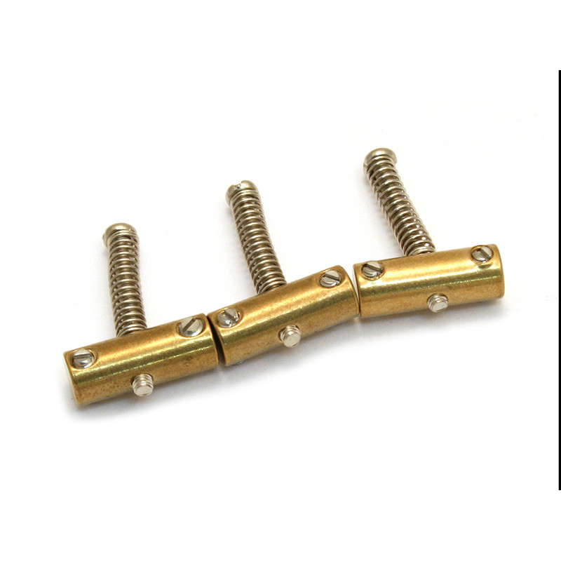 Made from the highest-quality material, Fender® bridge sections come with springs and screws (except where noted). Set of three vintage-style brass Telecaster® compensated bridge saddles. Package includes saddles, intonation springs and slotted intonation screws, and saddle height adjustment screws. Fits 3-saddle vintage-style bridge plate designs....
