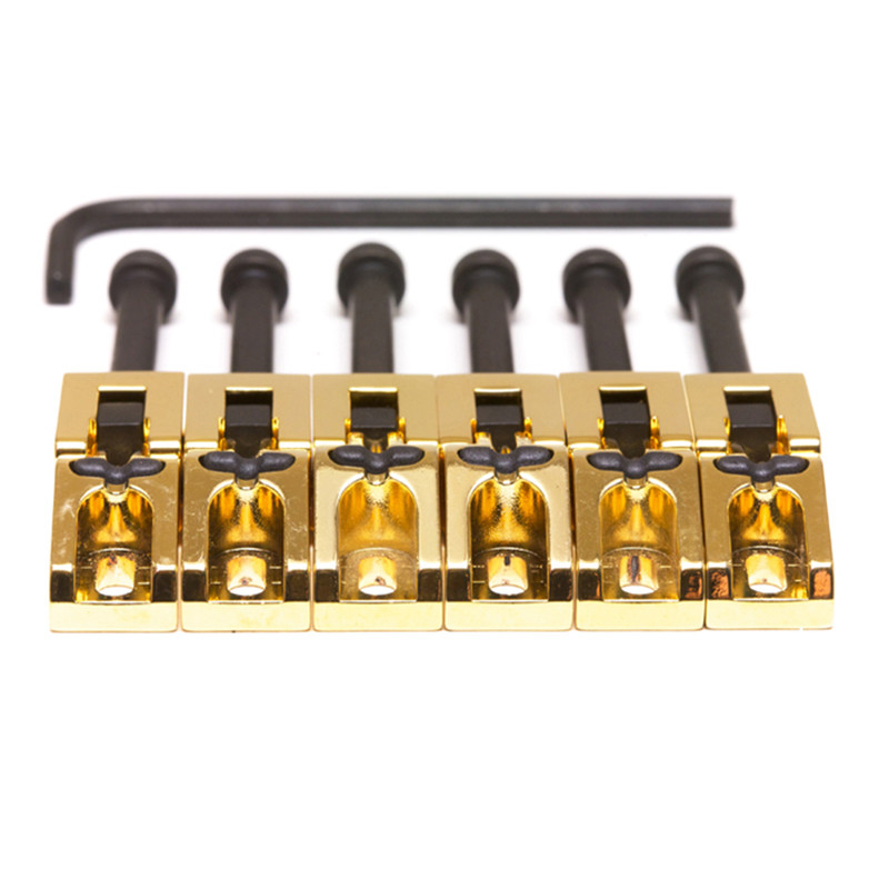 The PG0080-B6 is a set of six String Saver Classics for original style Floyd Rose bridges with an all black finish. They have a small String Saver insert in the saddle to dramatically reduce string breakage and improve tuning stability. They are a drop in replacement for any Floyd Rose style original bridge.