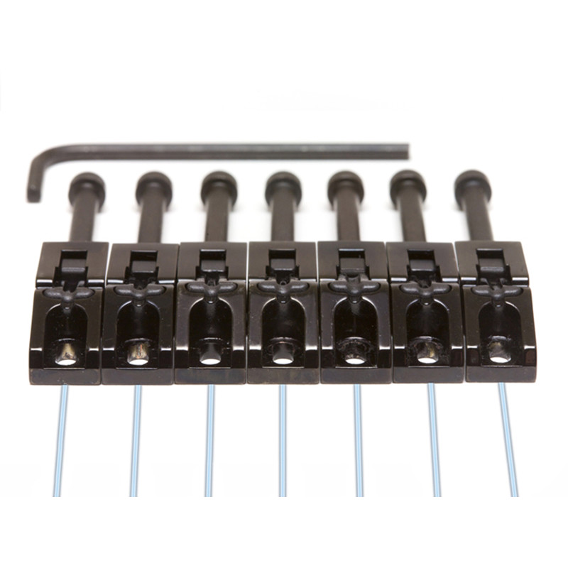 The PG0080-B6 is a set of six String Saver Classics for original style Floyd Rose bridges with an all black finish. They have a small String Saver insert in the saddle to dramatically reduce string breakage and improve tuning stability. They are a drop in replacement for any Floyd Rose style original bridge.
