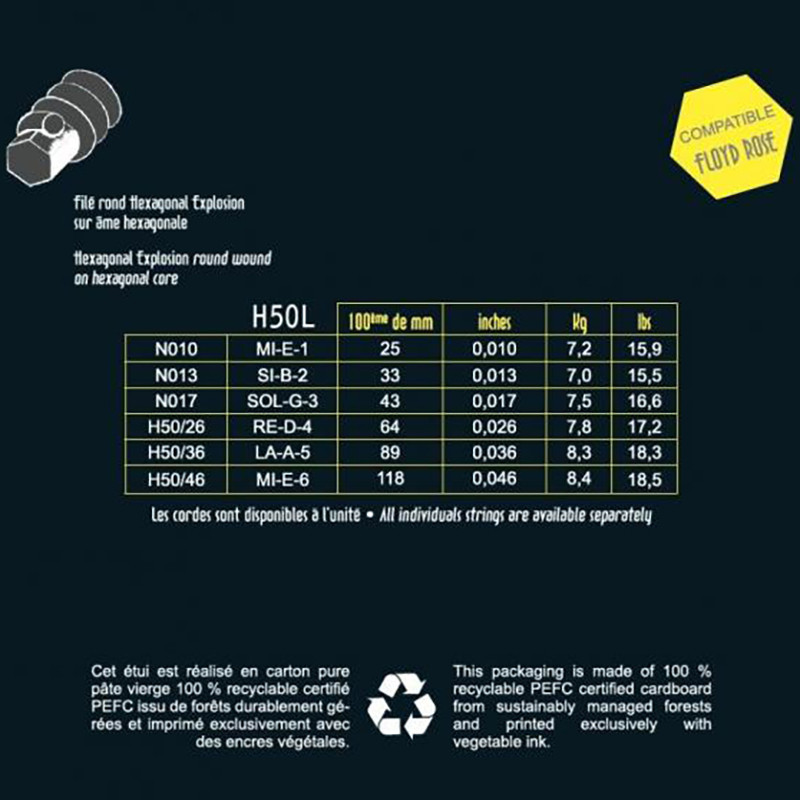 Les cordes pour guitare basse Hexagonal Explosion sont filées métal et plaquées nickel sur une âme hexagonale. Elles optimisent au maximum les qualités spécifiques du son et du feeling de l’âme hexagonale : réponse précise, projection rapide et puissance du son. La recherche particulière faite sur la flexibilité et l’élasticité rend le jeu facile et...