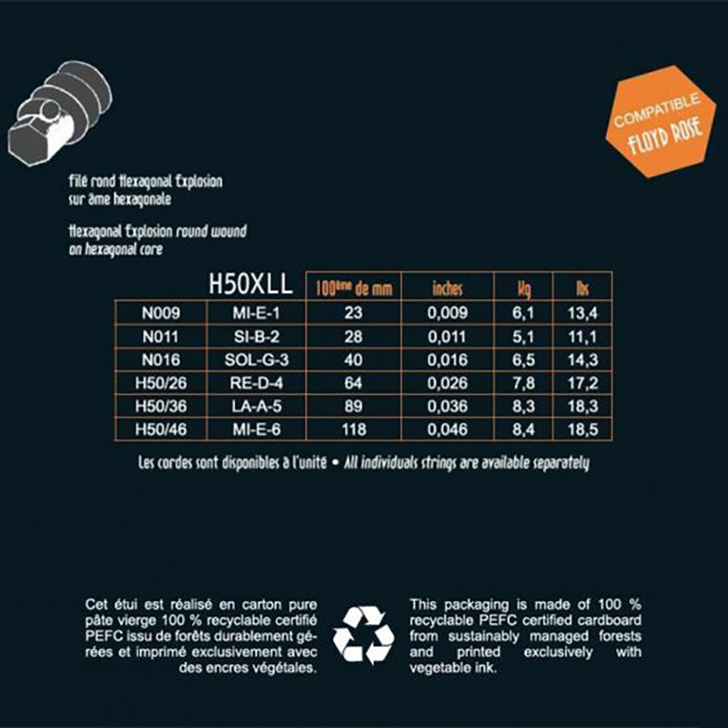 Les cordes pour guitare basse Hexagonal Explosion sont filées métal et plaquées nickel sur une âme hexagonale. Elles optimisent au maximum les qualités spécifiques du son et du feeling de l’âme hexagonale : réponse précise, projection rapide et puissance du son. La recherche particulière faite sur la flexibilité et l’élasticité rend le jeu facile et...