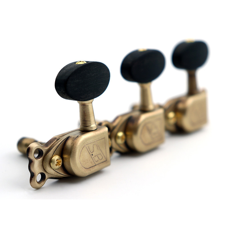 DR Machine Heads - Brass - Galalith buttons - 7mm shafts - With screws and eyelets