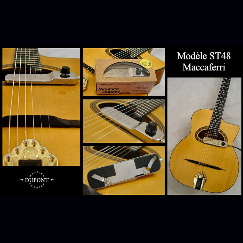 STIMER – ST48 PICKUP - Magnetic single coil pickup - Length : 140 mm - Thickness : 8 mm - Integrated volume control - Nickel-plated brass cover - Nickel-plated steel back with non-slip protection - For "petite bouche" gipsy guitars - 3m cable included