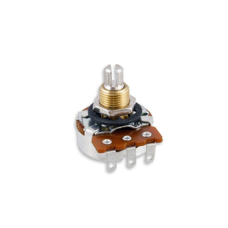 CTS® POTENTIOMETER SPLIT SHAFT 500K AUDIO - 24 Splines 6mm split shaft - Aluminum bushing and shaft - 15% Tolerance - Threaded shaft is 3/8" (9.52mm) in length and 3/8" (9.52mm) in diameter