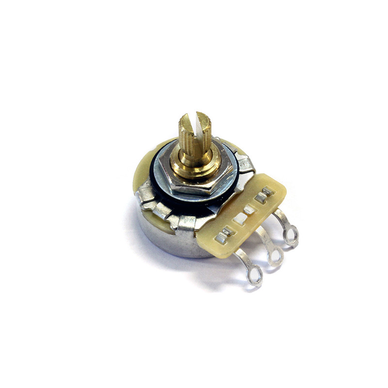 CTS® POTENTIOMETER SPLIT SHAFT 250K LINEAR - 24 Splines 6mm split shaft - Aluminum bushing and shaft - 15% Tolerance - Threaded shaft is 3/8" (9.52mm) in length and 3/8" (9.52mm) in diameter