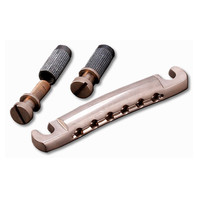 A true to “50’s Vintage” style lightweight Wraparound Bridge Set with TonePros Matching Locking Studs. Locking Feature eliminates “Bridge Lean” for optimum performance, and the Tail is engineered specially with “INVISI-Fulcrum” which allows strings to fulcrum on the bridge cleanly for exceptional intonation and increased harmonic overtones. Aluminum...