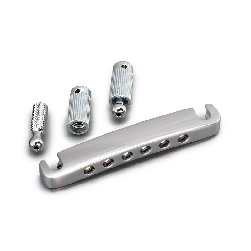A true to “50’s Vintage” style lightweight Wraparound Bridge Set with TonePros Matching Locking Studs. Locking Feature eliminates “Bridge Lean” for optimum performance, and the Tail is engineered specially with “INVISI-Fulcrum” which allows strings to fulcrum on the bridge cleanly for exceptional intonation and increased harmonic overtones. Aluminum...