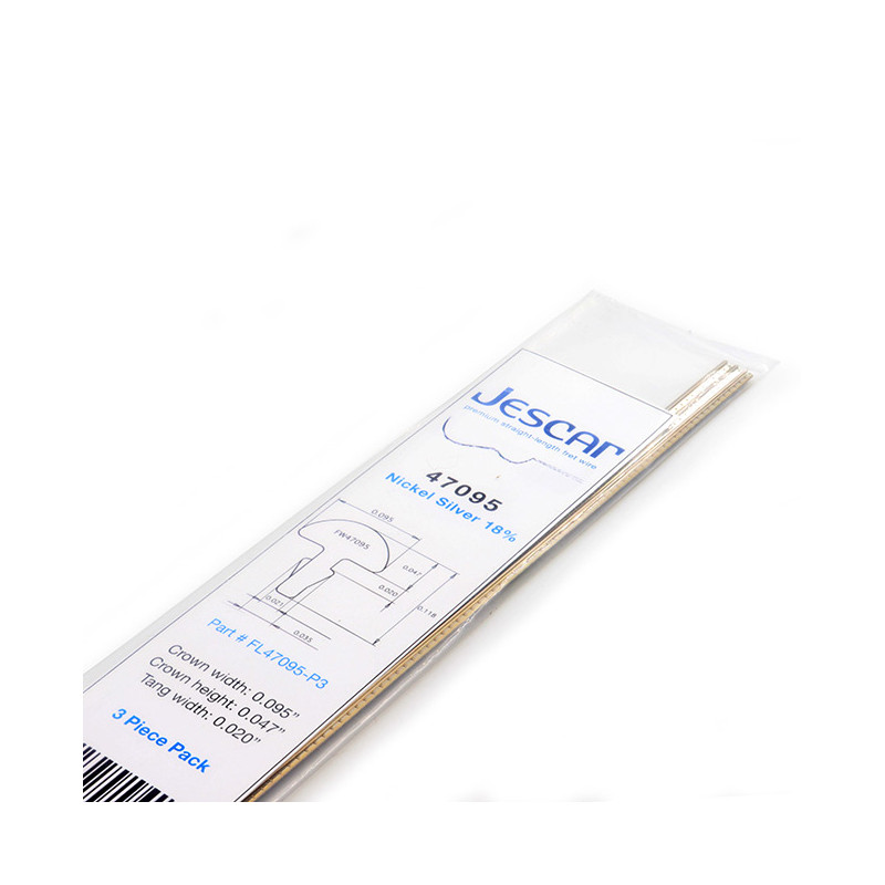 JESCAR® FRETWIRE 18% NICKEL SILVER 2.54 X 1.30mm (2' / 60cm STRAIGHT LENGTH) The perfect electric guitar size for that ’59 LP model. Not too tall, not too wide, but just right.