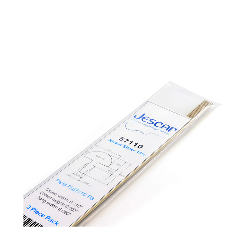 JESCAR® FRETWIRE 18% NICKEL SILVER 2.03 X 1.09mm (2' / 60cm STRAIGHT LENGTH) The same crown dimension as 43080 but with a wider and longer tang. Perfect for newer Taylor and Gibson acoustics.