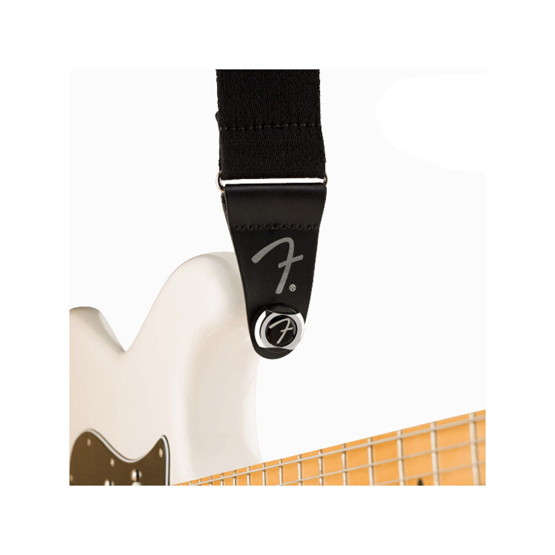 FENDER® RUNNING LOGO STRAP There's no better way to simultaneously maintain optimal comfort and timeless Fender style than this durable woven 2" wide guitar strap. Fully adjustable length (30”-51”) provides a versatile fit for most players. Reinforced leather ends and polyester backing provide durability and stability during every performance. Contrasting...