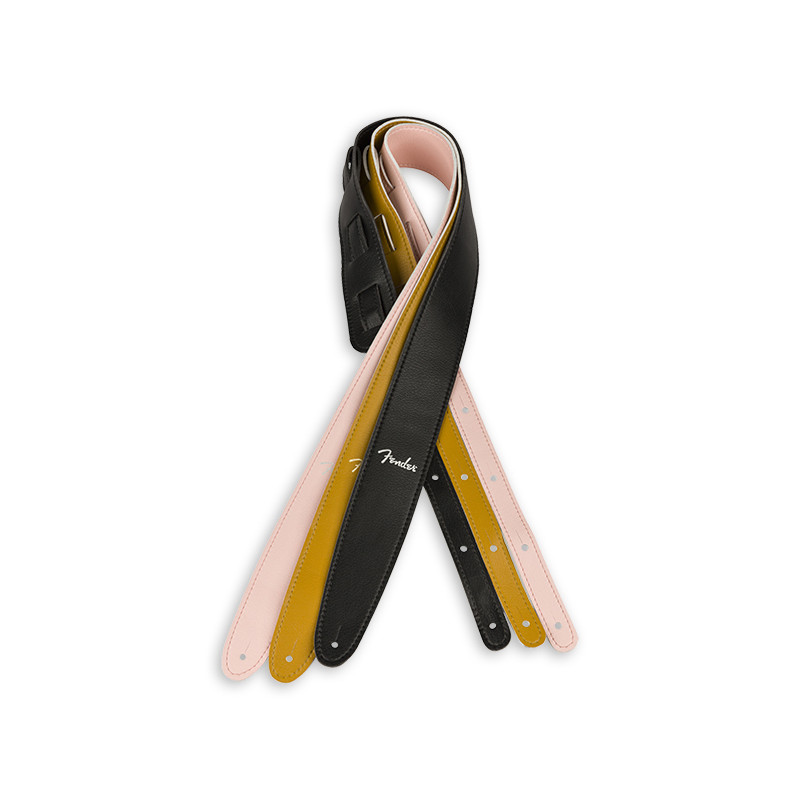 Handcrafted from eco-friendly vegan leather, these straps feature classic Fender colors and a ladder tail style adjustment. The double-sided vegan leather provides a soft, broken-in feel for maximum comfort with an added layer of padding. Double-sided microfiber vegan leather Emulates softness and broken-in feel of authentic leather Added layer of padding for comfort Ladder-style adjustment tail