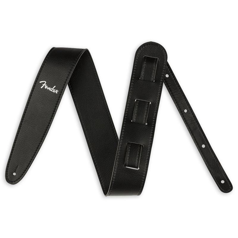 FENDER® BROKEN-IN LEATHER STRAP BLACK Fender's 2.5” Leather guitar strap offers a luxurious and comfortable feel. The sturdy genuine leather top sports an elegant oil finish while the backing is crafted from 5oz. cowhide leather. This strap adjusts from 44.5” to 53” long, making it ideal for guitarists of any height. 2.5”-wide guitar strap Crafted from...
