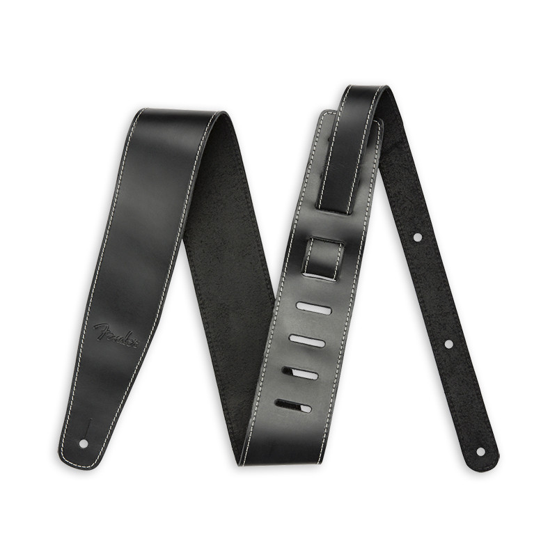 FENDER® BROKEN-IN LEATHER STRAP BLACK Fender's 2.5” Leather guitar strap offers a luxurious and comfortable feel. The sturdy genuine leather top sports an elegant oil finish while the backing is crafted from 5oz. cowhide leather. This strap adjusts from 44.5” to 53” long, making it ideal for guitarists of any height. 2.5”-wide guitar strap Crafted from oil leather Adjustable sizing from 44.5” to 53” Made in Canada