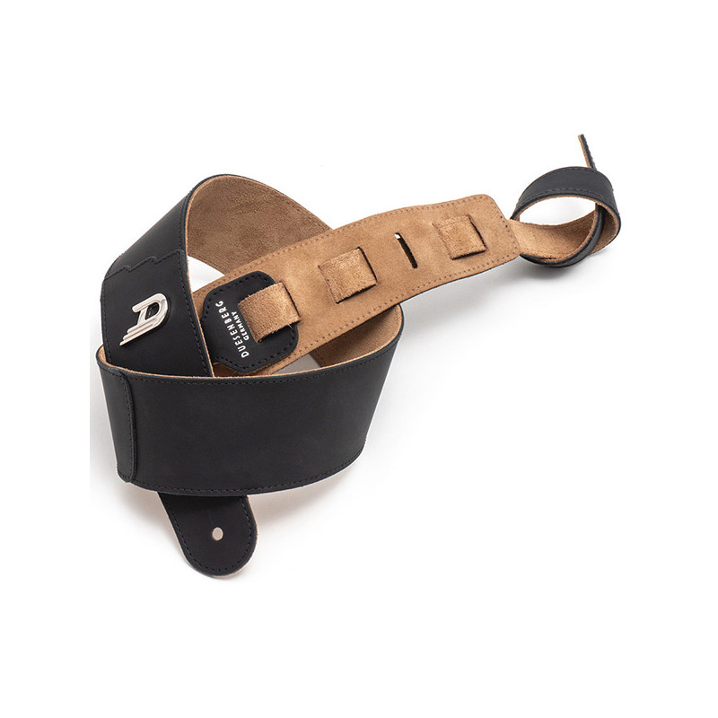 DUESENBERG 3-STEP CUSTOM BLACK A high quality thick leather strap with soft padding and custom aged appeal. High-quality genuine black dyed leather Soft padding white heavy-duty stitching Anti-slip suede inner surface Aged metal D-Logo Length adjustable (100-140cm)
