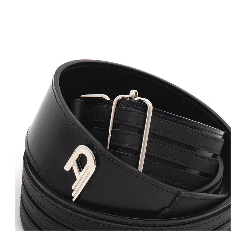DUESENBERG 3-STEP CUSTOM BLACK A high quality thick leather strap with soft padding and custom aged appeal. High-quality genuine black dyed leather Soft padding white heavy-duty stitching Anti-slip suede inner surface Aged metal D-Logo Length adjustable (100-140cm)
