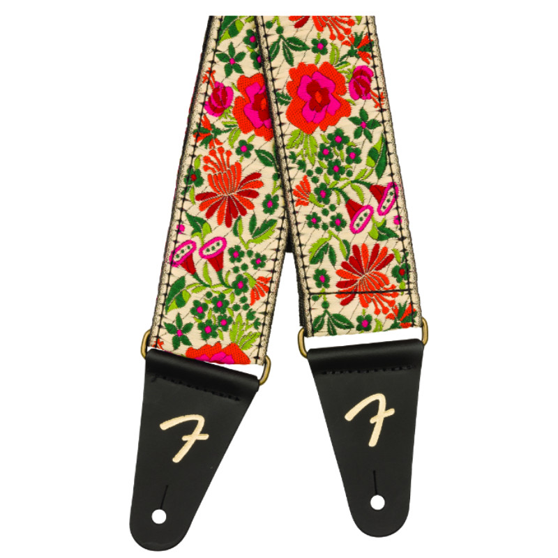 FENDER® RUNNING LOGO STRAP There's no better way to simultaneously maintain optimal comfort and timeless Fender style than this durable woven 2" wide guitar strap. Fully adjustable length (30”-51”) provides a versatile fit for most players. Reinforced leather ends and polyester backing provide durability and stability during every performance. Contrasting...