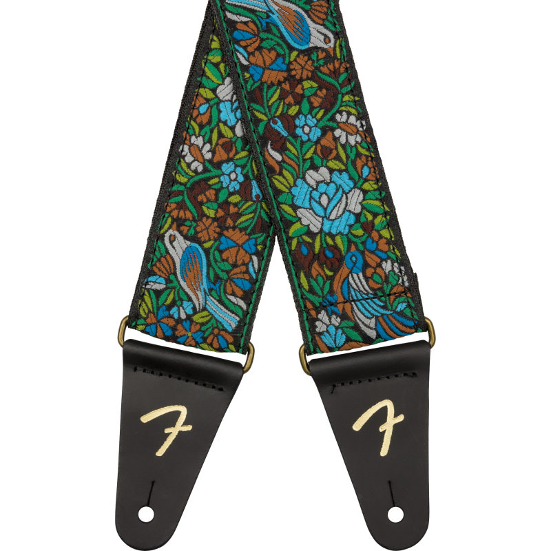 FENDER® RUNNING LOGO STRAP There's no better way to simultaneously maintain optimal comfort and timeless Fender style than this durable woven 2" wide guitar strap. Fully adjustable length (30”-51”) provides a versatile fit for most players. Reinforced leather ends and polyester backing provide durability and stability during every performance. Contrasting...