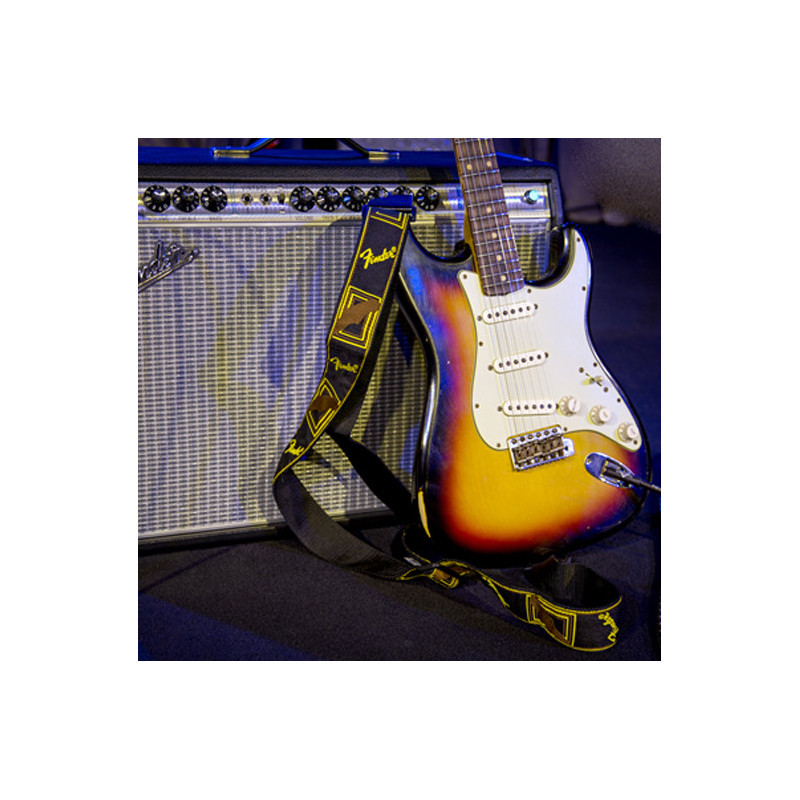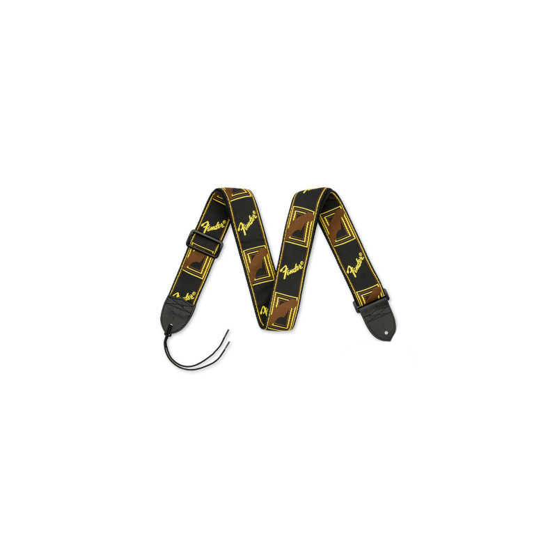 FENDER® RUNNING LOGO STRAP There's no better way to simultaneously maintain optimal comfort and timeless Fender style than this durable woven 2" wide guitar strap. Fully adjustable length (30”-51”) provides a versatile fit for most players. Reinforced leather ends and polyester backing provide durability and stability during every performance. Contrasting...
