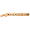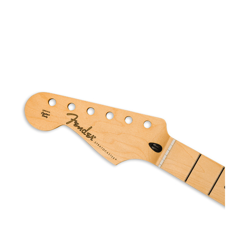 Crafted at our Ensenada, Mexico manufacturing facility, this genuine vintage-style Fender Stratocaster® guitar neck features a comfortable "Soft V" profile and 9.5"-radius maple fingerboard with 21 medium jumbo frets. The synthetic bone nut is pre-slotted with "pilot" string location grooves to make spacing a breeze when performing the final string slot...