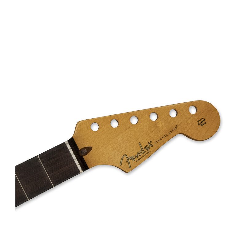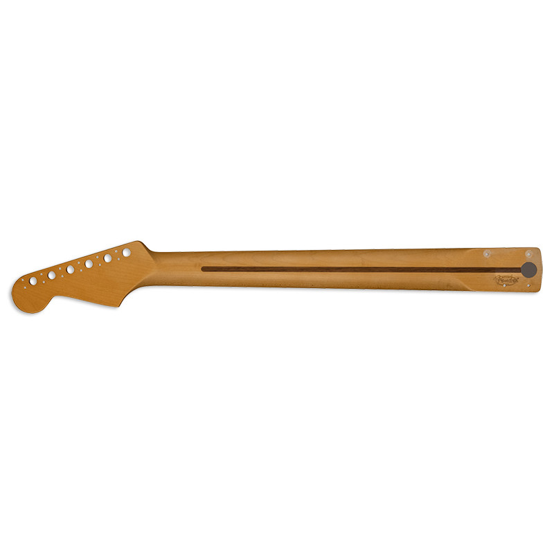 Crafted at our Ensenada, Mexico manufacturing facility, this genuine vintage-style Fender Stratocaster® guitar neck features a comfortable "Soft V" profile and 9.5"-radius maple fingerboard with 21 medium jumbo frets. The synthetic bone nut is pre-slotted with "pilot" string location grooves to make spacing a breeze when performing the final string slot...