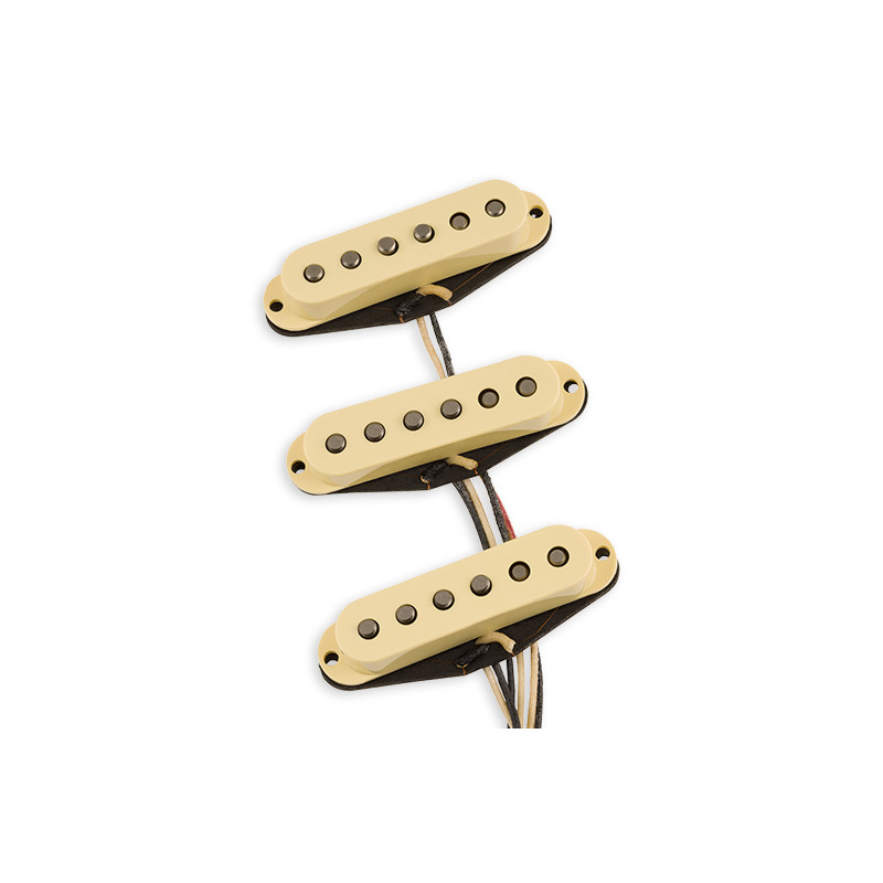 As Heard on Fender® American Vintage Stratocaster® guitar Fender Original ’57/’62 Strat® single-coil pickups are reverse-engineered from a 1963 Stratocaster guitar. These pickups deliver vintage-Strat sound, feel and vibe, with glistening highs and warm lows. Tonal Characteristics Formvar magnet wire adds brightness and glassiness Staggered hand-beveled...