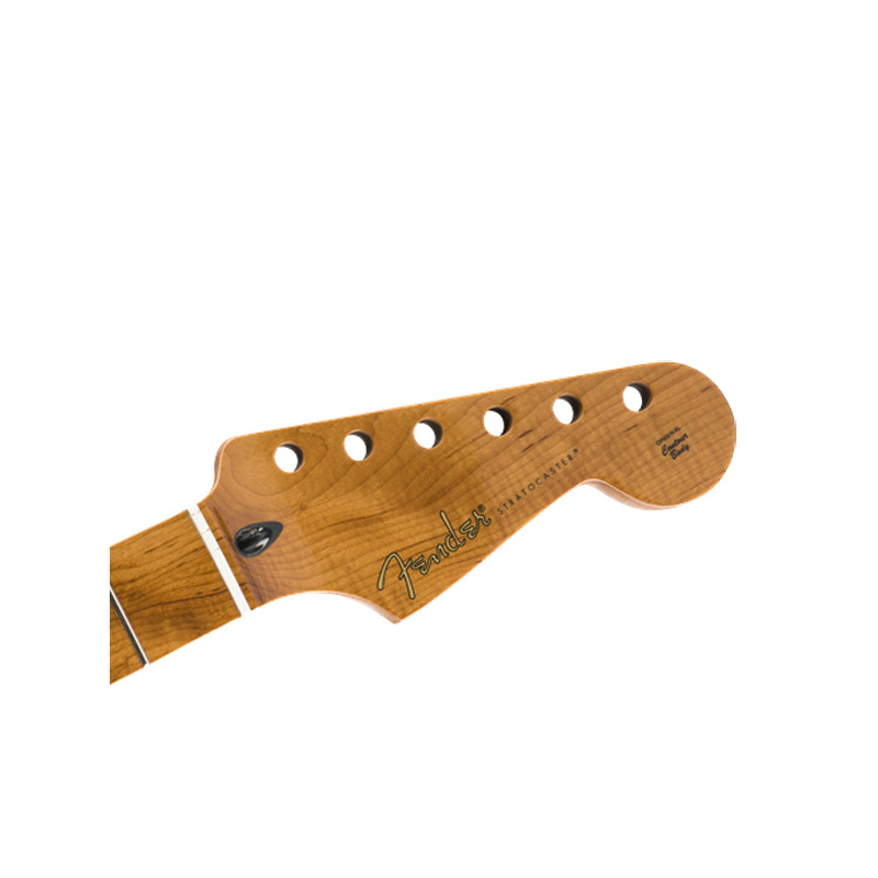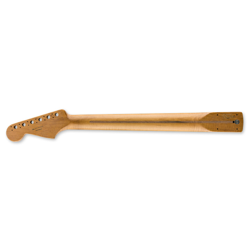 There’s no denying the allure of a roasted maple neck. Resistant to humidity shifts and featuring a gorgeous, dark look, they have more sustain and add a unique note to the instrument’s voice. This genuine Fender Stratocaster neck is crafted at our Ensenada, Mexico manufacturing facility. Featuring a comfortable "Modern C"-shaped profile and 9.5"-radius maple fingerboard with 21 narrow-tall frets, this neck was designed for pure playability. The synthetic bone nut is pre-slotted with "pilot" grooves for accurate spacing when filing the final string slots. The perfect way to give your Strat® authentic Fender feel, this replacement neck even sports our famous “spaghetti” logo on the headstock. This replacement neck is for a Fender or Squier® by Fender guitar. Because Fender genuine replacement necks have not been mounted to guitar bodies, nut slots must be cut by qualified personnel. Other installation processes may be required, such as fret work, fitting the neck to the neck pocket, and other instrument setup procedures. Your local FMIC Authorized Service Center can install genuine replacement necks; find Authorized Service Center locations near you in the “Support” section of fender.com. CouleurNatural