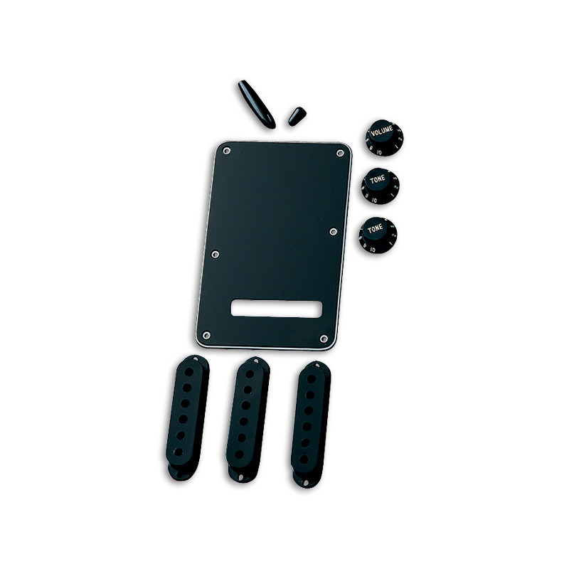 Want to change the look of your Stratocaster® without spending a lot of money on a paint job? Try sprucing it up with a Stratocaster Accessory Kit. Everything you need to personalize your Stratocaster. Includes volume and tone knobs, tremolo arm tip, switch tip, tremolo backplate and pickup covers. Pickup covers will not fit SCN™, N3™, or Noiseless™...