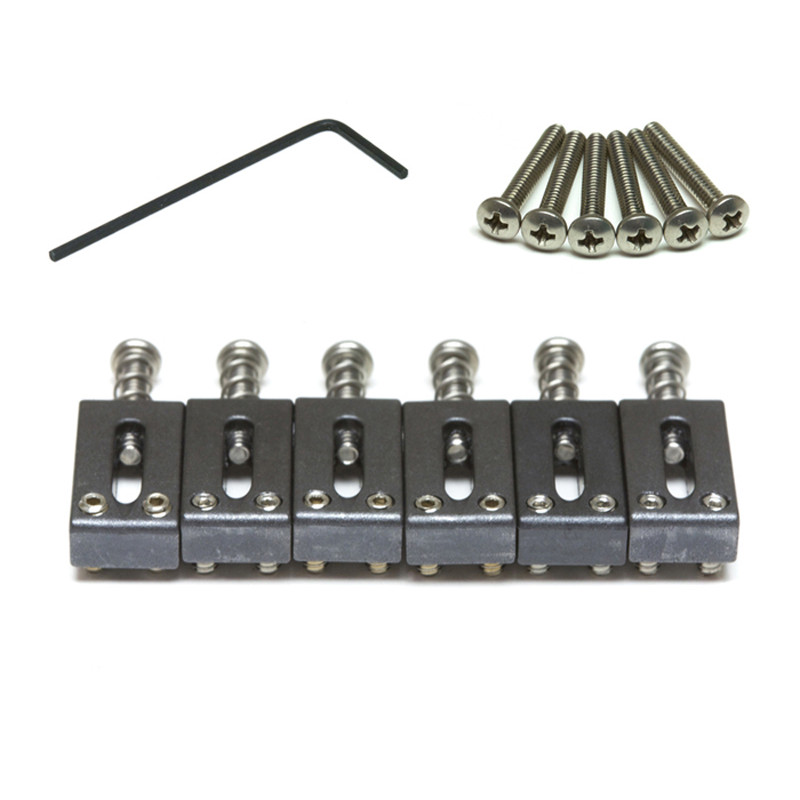 The PS-8001-00 is a perfect upgrade or replacement set of saddles for your Strat or Tele style guitar. They have an off set intonation screw and a 2 1/16th string spacing. Included with the set is a set of slightly longer intonation screws to be used for a Telecaster.