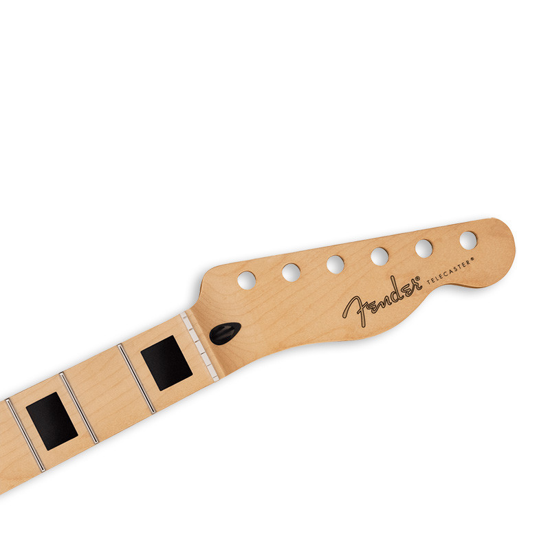 Add a touch of style to your guitar with a Player Series neck featuring block inlays. For modern playability with a throwback vibe, these necks have all the features of the Players Series instruments but with block inlays that make them stand out in a crowd. Fender replacement necks are made at Fender manufacturing facilities to the same specifications as those used on our instruments. This Ensenada, Mexico-made Telecaster neck features a maple fingerboard with black block inlays, a 9.5” radius and 22 medium jumbo frets. The maple neck has a comfortable Modern C neck profile that is comfortable for almost any playing style. The synthetic bone nut is pre-slotted with "pilot" string location grooves to make spacing a breeze when performing the final string slot filing. For true Fender authenticity, it's also serialized and stamped, with genuine headstock spaghetti logo decal. This replacement neck is for a Fender or Squier® by Fender guitar.