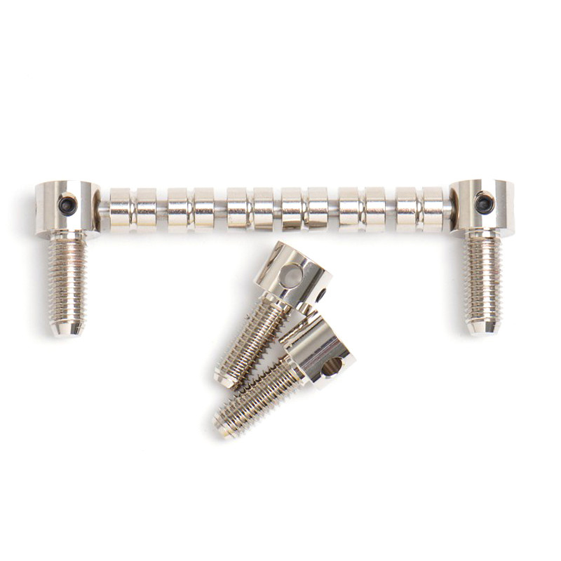 Lot de six pontets de chevalet plaqués nickel/chrome pour les modèles Stratocaster de série American Vintage produits à partir de 1986. Vis d'intonation centrées, ressorts d'intonation et vis pour régler la hauteur de pontets inclus.
