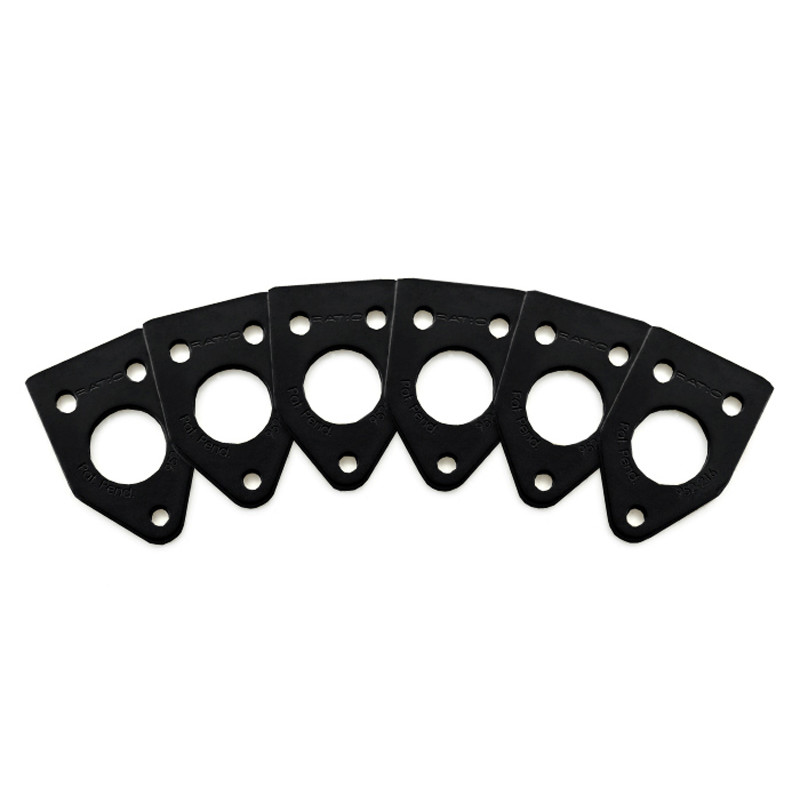 The PRT-952-214 is a set of 6 Ratio InvisoMatch Standard Installation Plates, designed for easy installation of Ratio Tuned Machine Heads. Match the correct plates to the current machine head screw position on your guitar. Use your guitars existing mounting screw holes for a fast, perfect Ratio Installation. It has a 45 degree screw hole mount.