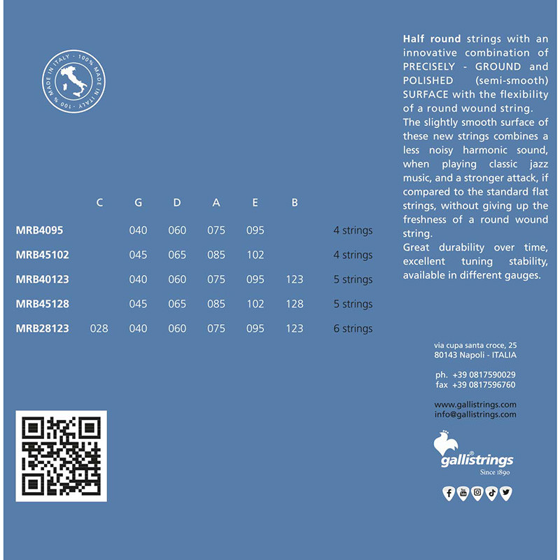 GALLI STRINGS®BASS JAZZ FLAT WOUND MED .045-.105 Filé plat en acier chromé sur une âme hexagonale. Les cordes GalliStrings® JF sont particulièrement douces au toucher, ce qui ne les empêche pas d'être puissante et d'avoir un long sustain. .045 - .065 - .085 - 1.05