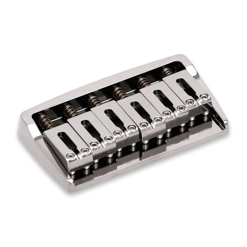 Mass plus class Shapely and ultramassive hardtail bridge for flat bodies. The heavy base plate, the string guide through the body and the massive string saddles guarantee sustain until the bitter end! Including mounting screws. Width: 76,2mm Depth: 44,7mm Height: 9,3mm String spacing: 54mm Weight: 117g