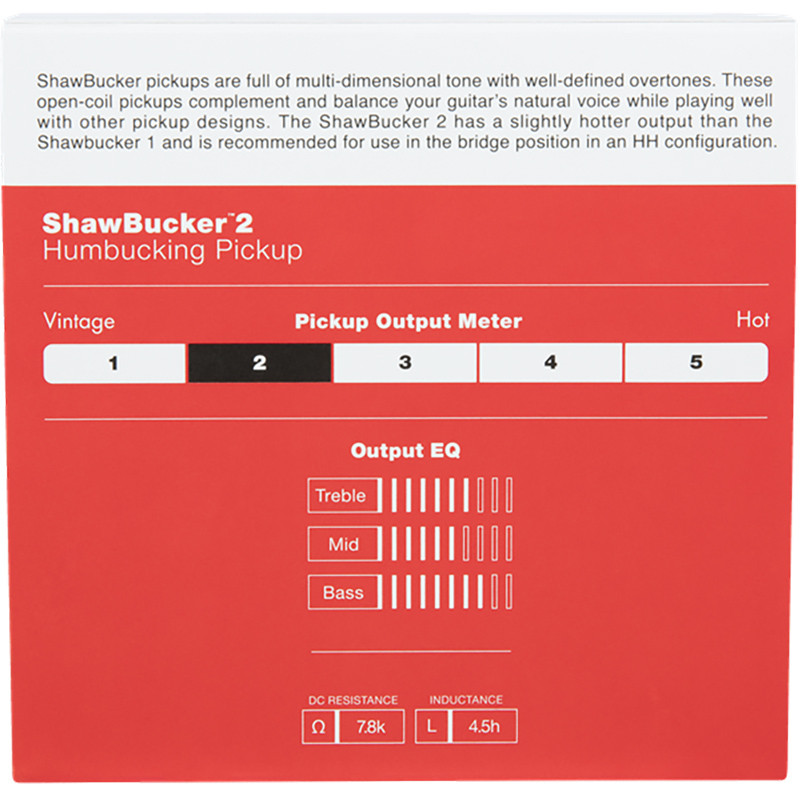 Designed by acclaimed humbucking pickup guru Tim Shaw, the ShawBucker™ pickup is, in his words, "a new take on an old perception." The ShawBucker retains clarity and impressive note definition while remaining resistant to 60-cycle hum and other extraneous noise. Full of multi-dimensional tone with well-defined overtones, this open-coil pickup complements...