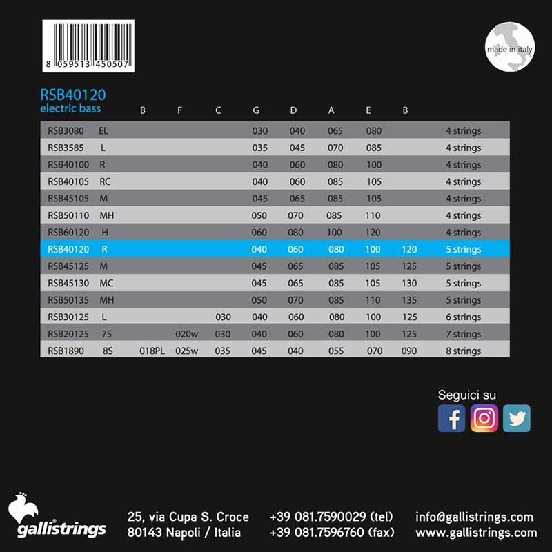GALLI STRINGS® BASS ROCKSTAR MEDIUM CUSTOM NICKEL ROUND WOUND .045-.130 5 STRINGS les GalliStrings® RSB sont fabriqués avec les matériaux les plus purs en utilisant les technologies les plus avancées. Pour un son de basse parfait et durable. .045 - .065 - .085 - .105 - .130
