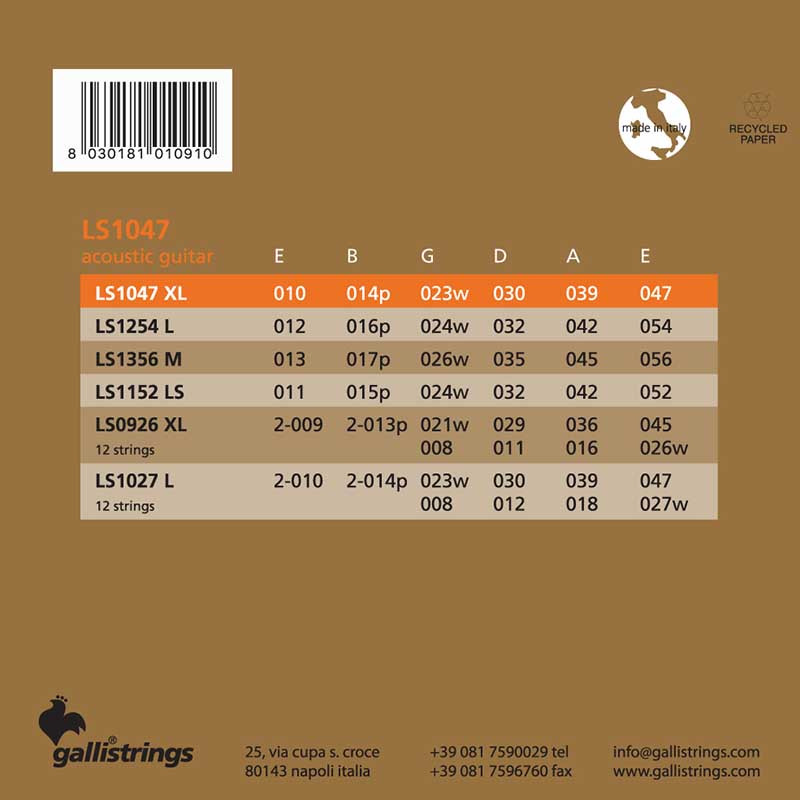 GALLI STRINGS® LUCKY STAR 12-STRINGS PHOSPHOR BRONZE EXTA LIGHT 010-047 Les cordes Gallistrings® phosphore bronze sont composées d'un alliage de cuivre sur une âme hexagonale, d'étain et de phosphore pour produire un son brillant avec une excellente réponse dans les basses. .010 x2 -.014 x2 - .023 - .030 - .012 - .039 - .018 - .047 - .027