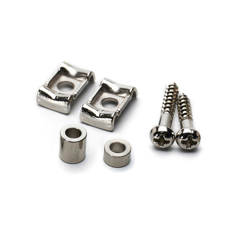 Fender® string guides (string trees) help minimize tuning problems and sympathetic overtones caused by low string tension. Package includes two string guides and mounting hardware. Used on American Standard, American Series, American Special, and American Deluxe (USA) models.