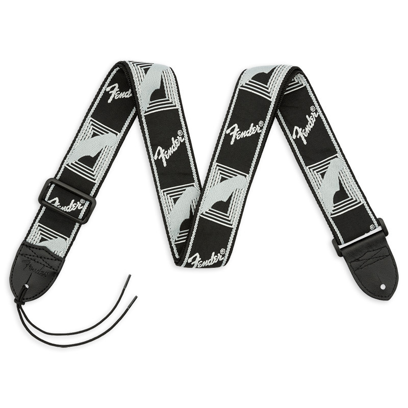 FENDER® RUNNING LOGO STRAP There's no better way to simultaneously maintain optimal comfort and timeless Fender style than this durable woven 2" wide guitar strap. Fully adjustable length (30”-51”) provides a versatile fit for most players. Reinforced leather ends and polyester backing provide durability and stability during every performance. Contrasting...