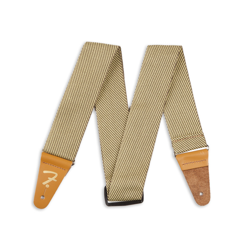 FENDER® RUNNING LOGO STRAP There's no better way to simultaneously maintain optimal comfort and timeless Fender style than this durable woven 2" wide guitar strap. Fully adjustable length (30”-51”) provides a versatile fit for most players. Reinforced leather ends and polyester backing provide durability and stability during every performance. Contrasting...