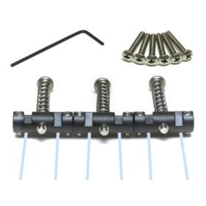 The PN-8000-00 is a set of six ghost loaded saddles with a centered intonation screw. They are designed to work with any of our ghost preamp kits. They will fit any Stratocaster or Telecaster style guitar with a string spacing of 2 1/16th. Each set of saddles come with a set of longer intonation screws for use with modern style Telecaster style guitars.