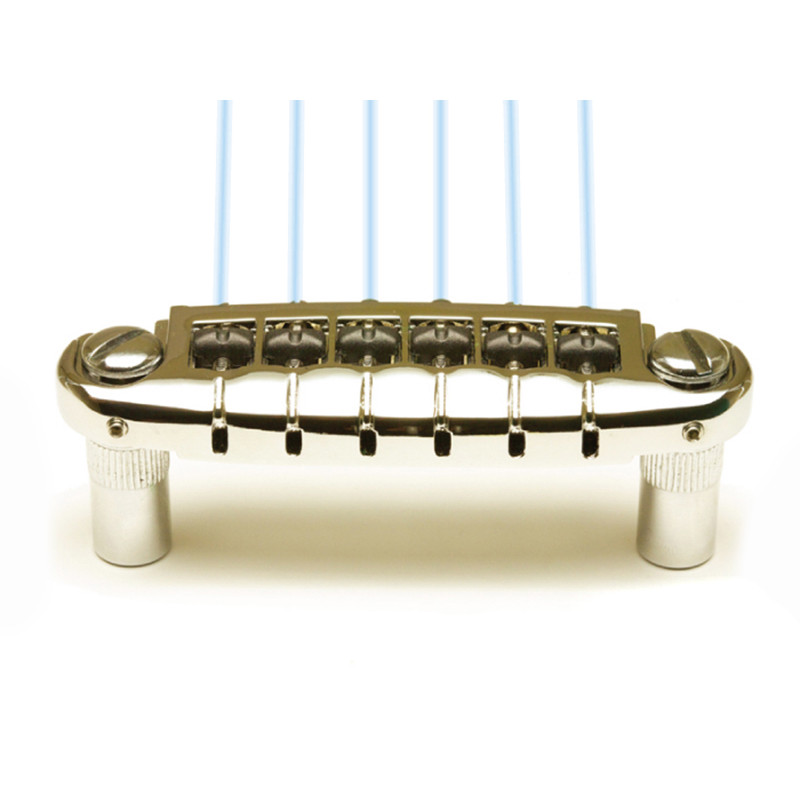 The PN-8000-00 is a set of six ghost loaded saddles with a centered intonation screw. They are designed to work with any of our ghost preamp kits. They will fit any Stratocaster or Telecaster style guitar with a string spacing of 2 1/16th. Each set of saddles come with a set of longer intonation screws for use with modern style Telecaster style guitars.