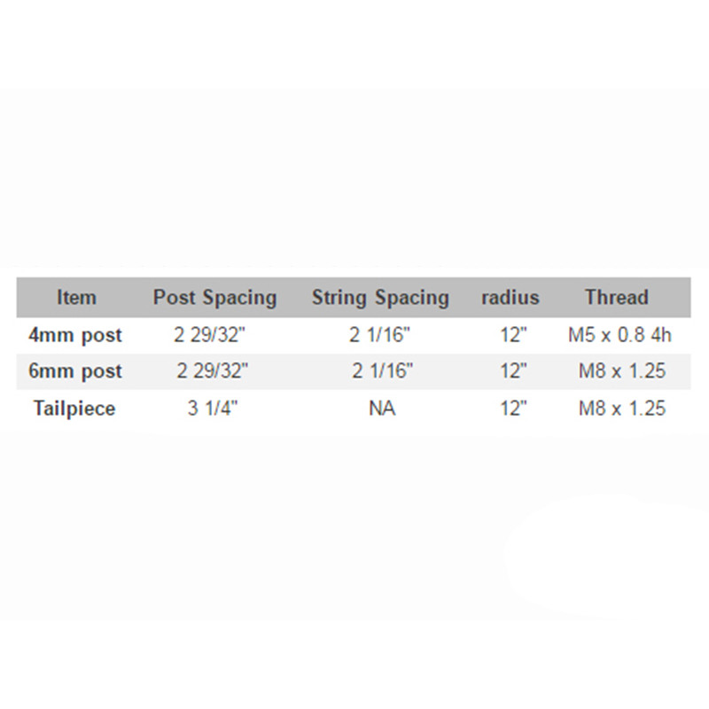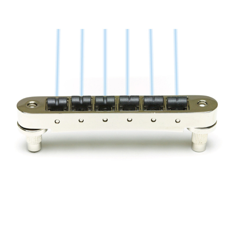 The PN-8001-00 is a set of six ghost loaded saddles with a offset intonation screw. They are designed to work with any of our ghost preamp kits. They will fit any Stratocaster or Telecaster style guitar with a string spacing of 2 1/16th. Each set of saddles come with a set of longer intonation screws for use with modern style Telecaster style guitars.