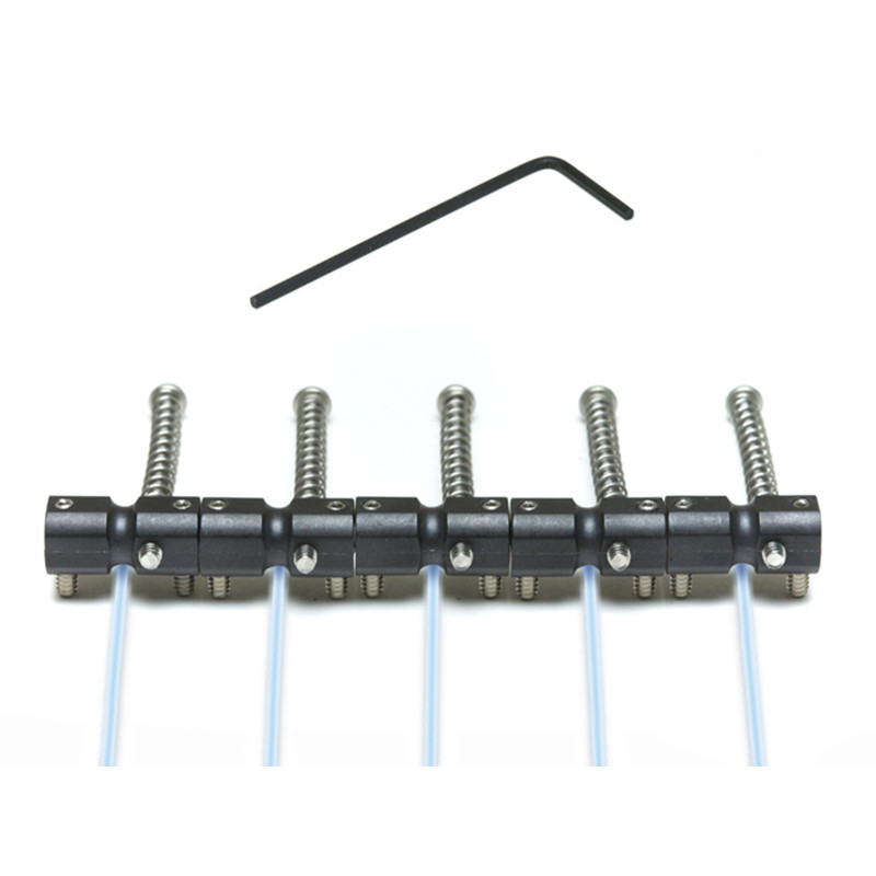 The PN-8000-00 is a set of six ghost loaded saddles with a centered intonation screw. They are designed to work with any of our ghost preamp kits. They will fit any Stratocaster or Telecaster style guitar with a string spacing of 2 1/16th. Each set of saddles come with a set of longer intonation screws for use with modern style Telecaster style guitars.